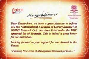 Warm greetings from Guru Nanak Institute of Management Studies (GNIMS Business School), Mumbai. It gives us immense pleasure to call for papers for our Bi-Annual Management Journal Sansmaran and International e-Journal of Library Science. Sansmaran is a peer-reviewed journal having ISSN number 2278 -7801. Sansmaran publishes articles from people who research, teach and apply various aspects of management in real life. International e-Journal of Library Science has ISSN No. 2319992X. International e-Journal of Library Science publishes articles from people who research, teach and apply various aspects of library Science in their respective fields. Both the Research Journals have been accredited with the Impact Factor by International Innovative Journal Impact Factor